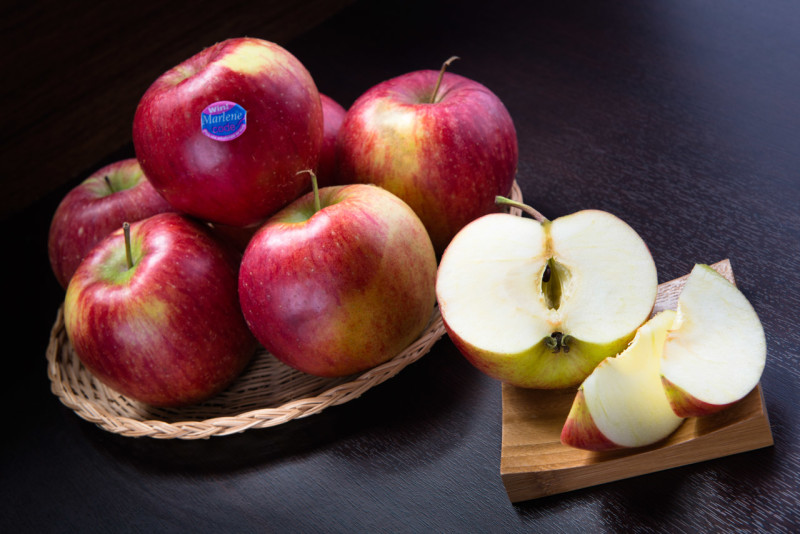 Tra le varietà a buccia rossa, troviamo la mela Annurca, che è largamente coltivata e prodotta nelle regioni meridionali italiane, in particolare in Campania, lievemente profumata, dolce-acidula, e molto succosa. Vi sono anche la Fuji, la Pink Lady, la Royal Gala, la Stark Delicious, l’Imperatore, l’Ambrosia e la Renetta (poco zuccherina e a bassa acidità).